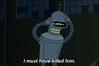 I must have killed him. He was my best friend, and I killed him. Oh! I never felt so empty inside. Bender, I'm alive! You didn't hurt me at all but I know you wanted to, and that's what matters.