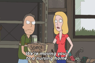 What -- what are you guys doing with my stuff? We're moving you-, to a nursing home. A nursing home? What are -- what are you, nuts?