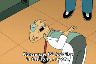 Nonsense. It's just like in the song I wrote. We all need a new angle on life Bender, you've gotta help us.
