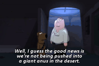 Well, I guess the good news is we're not being pushed into a giant anus in the desert.