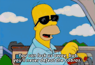 You can lock us away, but you'll never defeat the Cobras. Cobras? I thought you were the Hell's Satans. Uh-- Oink, oink, oink!