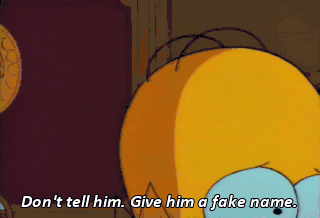 Don't tell him. Give him a fake name. Homer Simpson. Doh !