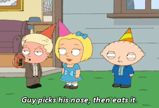 Guy picks his nose, then eats it.