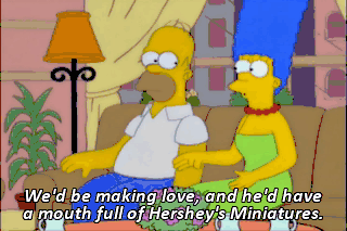 We'd be making love, and he'd have a mouth full of Hershey's Miniatures.