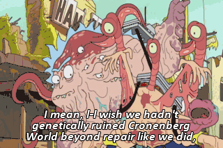 I mean, l-l wish we hadn't genetically ruined Cronenberg World beyond repair like we did,