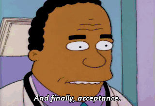 And finally, acceptance. Well, we all gotta go sometime.