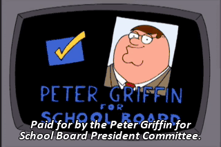 Paid for by the Peter Griffin for School Board President Committee. Sorry, Lois.