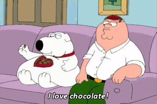 I love chocolate! But I can't eat it, because then I'll get fat. But it's so good! Are you ready, Brian? I guess so. Stop! Brian, come quick!