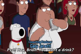 Psst! Hey, Brian. You want a drink? You snuck in liquor? Yeah, loosens me up so I can talk to the people around me. All right, I'll get in on that.