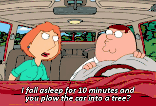 I fall asleep for 10 minutes and you plow the car into a tree?