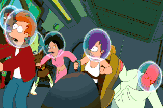 I'll protect you, Leela. My love is stronger than the vast majority of explosions. FARNSWORTH: Fry did, in fact, save Leela, though at a terrible cost to himself.