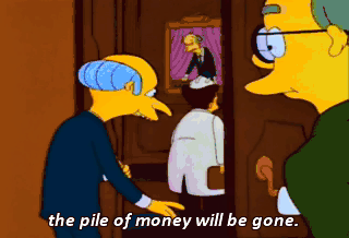 the pile of money will be gone. Oh ! Look, Smithers, the money and the very stupid man are still here.