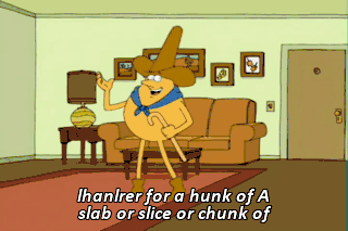 lhanlrer for a hunk of A slab or slice or chunk of f hanlrer for a hunk of cheese When your get-up-and-go has got up and went Howdy, pardner.