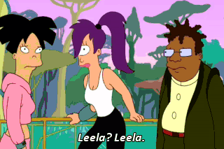 Leela? Leela. How is this possible? And can you believe she wore a tank top to my funeral? Shut up! We got to get out of here! (ROARING) No, you shut up, we got to get out of here. (ALL SCREAMING)