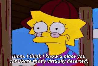 Hmm. I think I know a place you can skate that's virtually deserted. Like, you know, whatever. All right! Excellent! Okay.