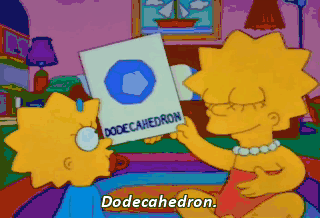 Dodecahedron. "Do-deca-he-dron." Lisa, I don't know what you're doing, but it's very strange, and your father's trying to worry.
