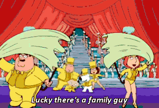Lucky there's a family guy Lucky there's a man who positively can do All the things that make us Laugh and cry He's a family guy