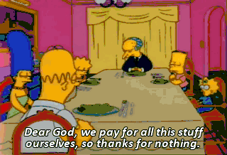 Dear God, we pay for all this stuff ourselves, so thanks for nothing. Only an innocent child could get away with such blasphemy. God bless them all. Amen.