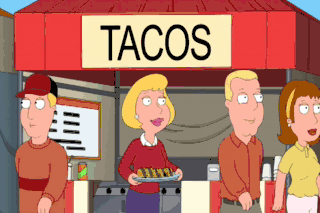 Tacos! Hot tacos here! Oh, are those tacos? You better believe they're tacos. I love tacos! Especially on a corn tortilla. Aah! I love tacos on a corn tortilla!