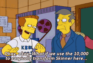 Okay, okay. What if we use the 10,000 to surgically transform Skinner here... into a-- some kind of a lobster-like creature? Well, now wait just a minute. That wasn't discussed with me.