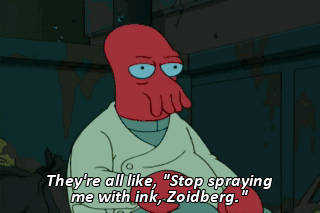 They're all like, "Stop spraying me with ink, Zoidberg." "Put on pants, Zoidberg." "Don't touch our fancy box, Zoidberg."