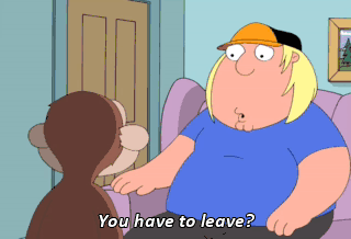 You have to leave? But I thought you were gonna go back to living in my closet again. I think that time of my life is over, Chris.