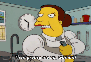 Then grease me up, woman!
