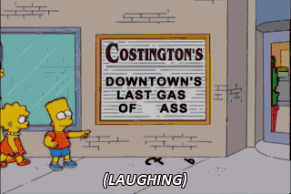 (LAUGHING) Where are your clothes for the gentleman who is big and fat? The basement, sir. Woo-hoo! Homer, before you get anywhere near the escalator, you've gotta tie those shoes. Homer!