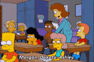 Morgan. Dakota. Ashley. Dakota. Tyler. Tyler. Lisa. What’s this weird mark next to my "A'"? That's an A-minus. Mm. Minus? Nice work, Bart. An "A'"? Copacetic. You did better than me?