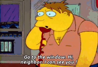 Go to the window. Hi, neighbor. I can see you ! Ju-- just get over here and bring 50 bucks for bail ! Fifty bucks ? What'd you do ? Kill a judge ? Where am I gonna get 50 bucks ?