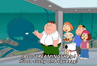 (ALL SCREAMING) Help! It's so sucky and squeezy! I'll handle this. I've tangled with the likes of these before.