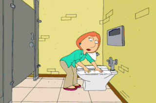 OUAGMIRE: Would you just sit down and go to the bathroom already? A scandal at the Ouahog Bowling Alley tonight... where a local man, Glenn Quagmire... was charged with peeping in the ladies I room.