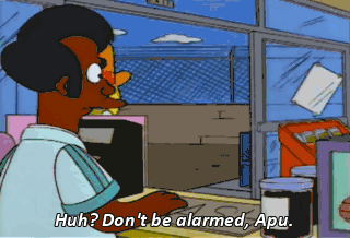 Huh? Don't be alarmed, Apu. just go about your daily routine like I'm not wearing the hat. Your headgear seems to be emitting a buzzing noise, sir.