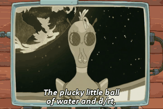 is dominated by seven billion primate-descended natives who love to eat spaghetti and pray to kangaroos.