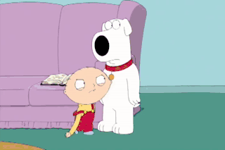 Mom! We're in here, Lois. He's napping. Relax. I'm gonna pop it back in. (MUFFLED GRUNTING) Get in there! Hold still, Stewie! (BOTH GRUNTING)