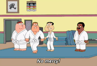No mercy! (FARTS) All right, we're gonna do it once more. (ALL GROANING) And this time, no mistakes. One, two, three, four.