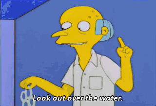 Look out over the water. I figured if one six-pack holder will catch one fish, a million sewn together will catch a million fish. Watch.
