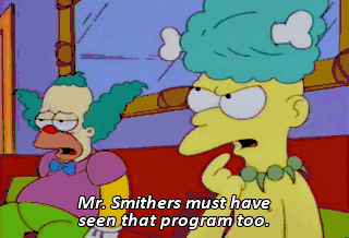 Mr. Smithers must have seen that program too. He never misses it. Hmm. At the town meeting, he mentioned that he watched Comedy Central.