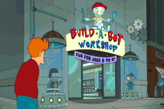 "Build-a-Bot Workshop." It's time to start living again. At least it's something to distract me from Leela.