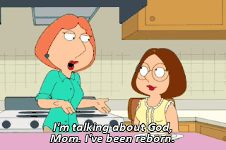 I'm talking about God, Mom. I've been reborn.