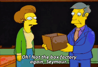 Oh! Not the box factory again, Seymour. This may well prove fascinating. I know. I'll just do like Lisa... and escape into fantasy. Class, instead of going to the box factory today,