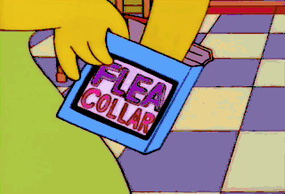 Mom, why do I have to wear a flea collar? Oh, it's just easier this way. Ahh-- D'oh! Ahh-- D'oh!