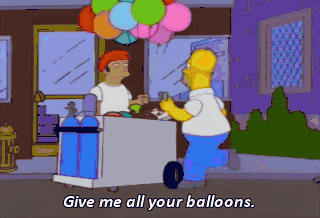 Give me all your balloons. I hope this works. These are for you if you let me use your cherry picker. Well, I've already got some balloons, but they're not this nice. Deal!