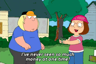 I've never seen so much money at one time! What do you think we should we do with it? I say we buy $26 worth of ice cream and just pig out.