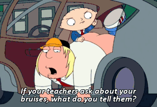 If your teachers ask about your bruises, what do you tell them? I got hit by a baseball! (Lois) Oh, Mel! Mel? Wait a minute. You were fantasizing about Mel Gibson.