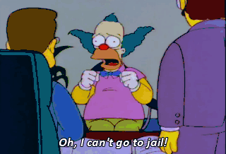 Oh, I can't go to jail! I got a swanky lifestyle. I'm used to the best. Krusty, this is America. We don't send our celebrities to jail.