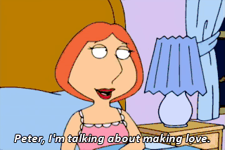 Peter, I'm talking about making love. Oh, I thought you wanted us to murder the children and harvest their organs for beer money.
