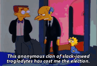 This anonymous clan of slack-jawed troglodytes has cost me the election.