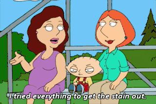 I tried everything to get the stain out. What about lemon juice? Oh, What about club soda? What about shutting the hell up?
