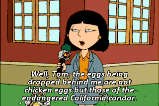 Well, Tom, the eggs being dropped behind me are not chicken eggs but those of the endangered California condor.